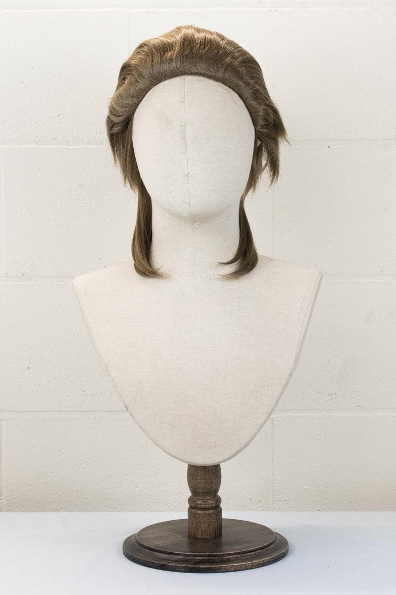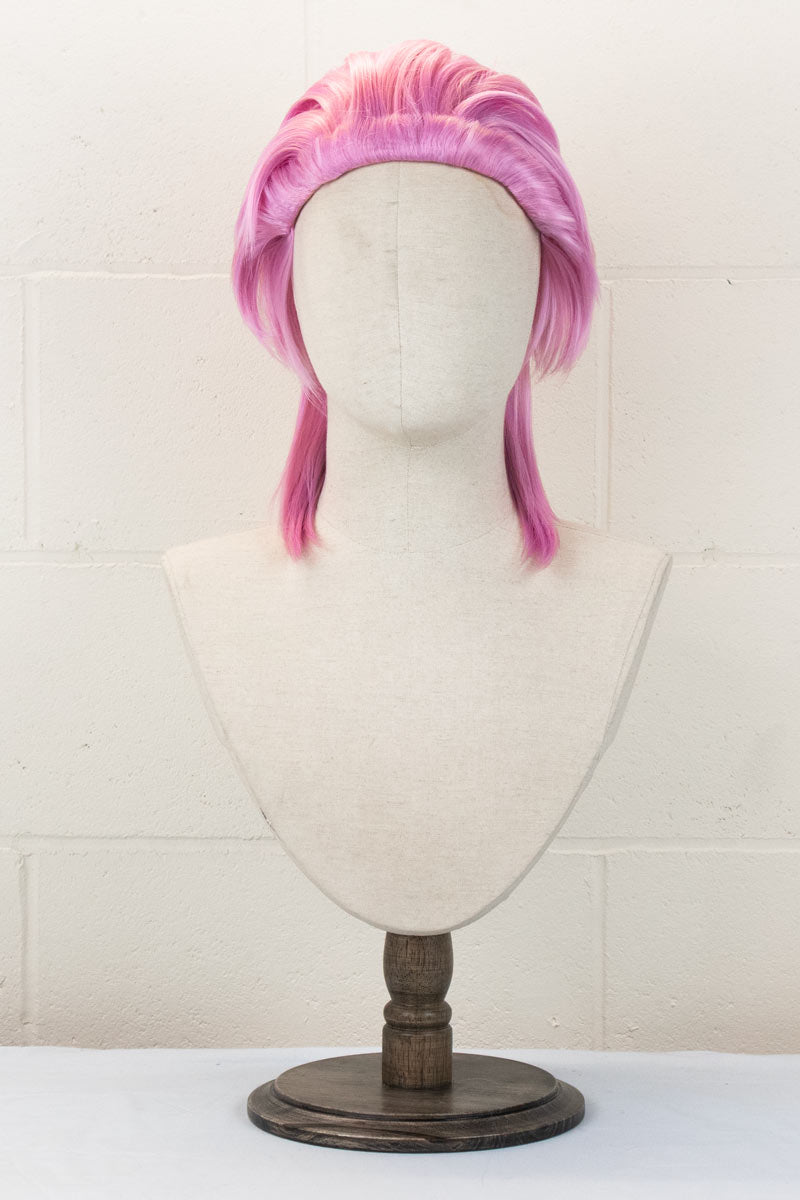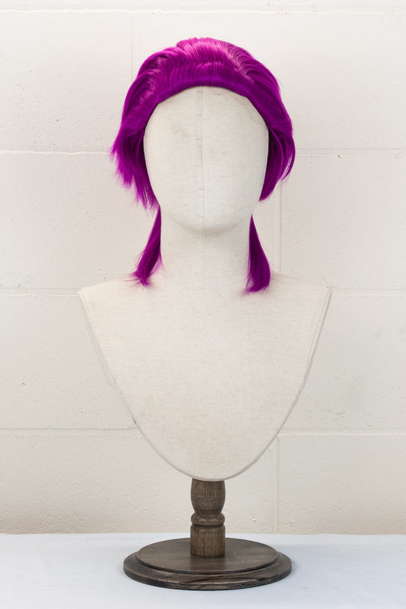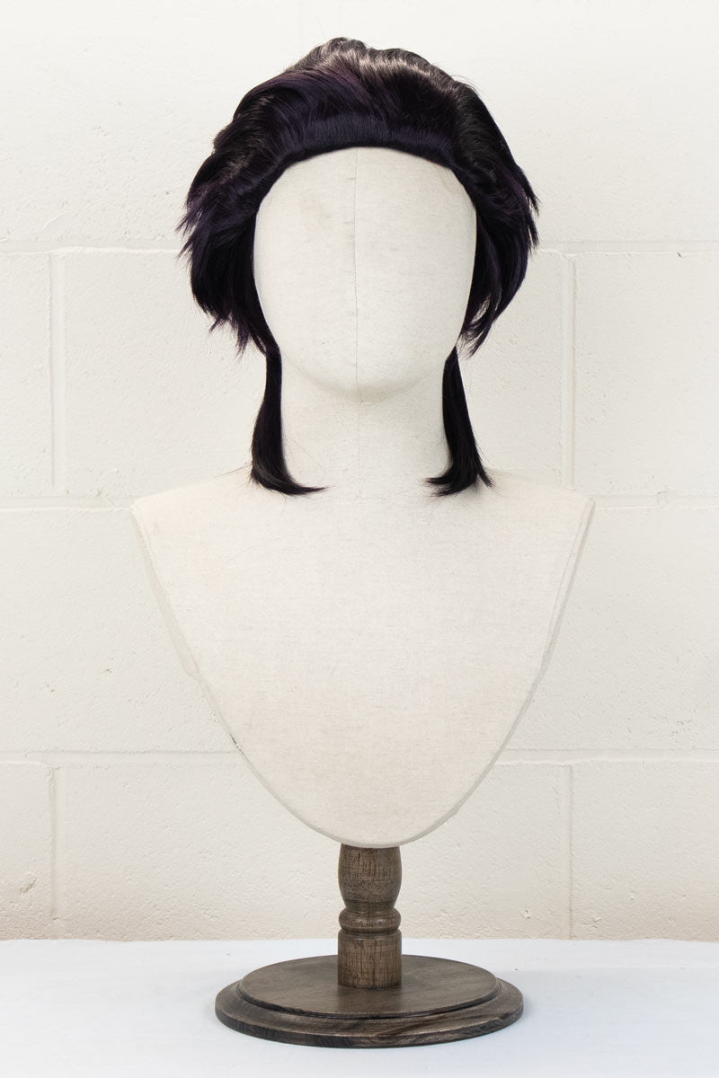 The fringe of this wig is prestyled to go up and backwards but it can be made to point down instead using heat (see styling notes below.)