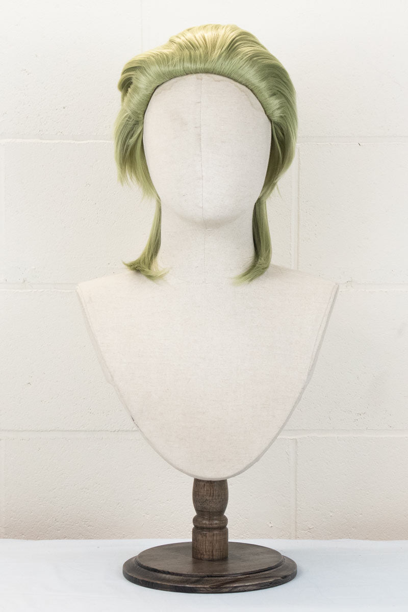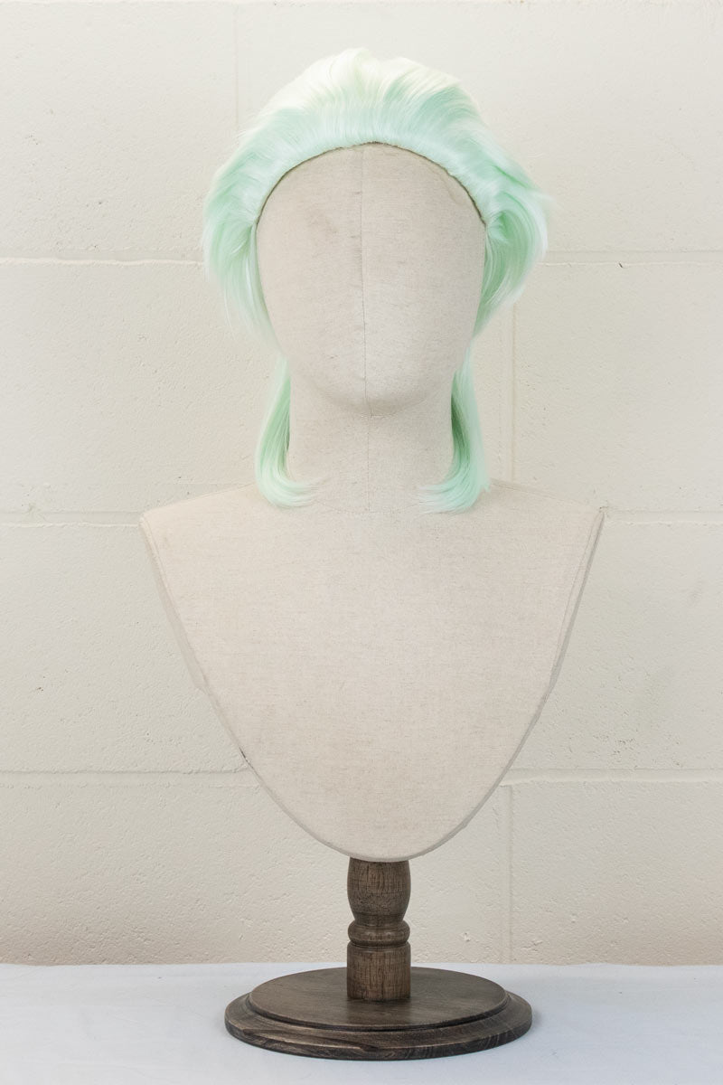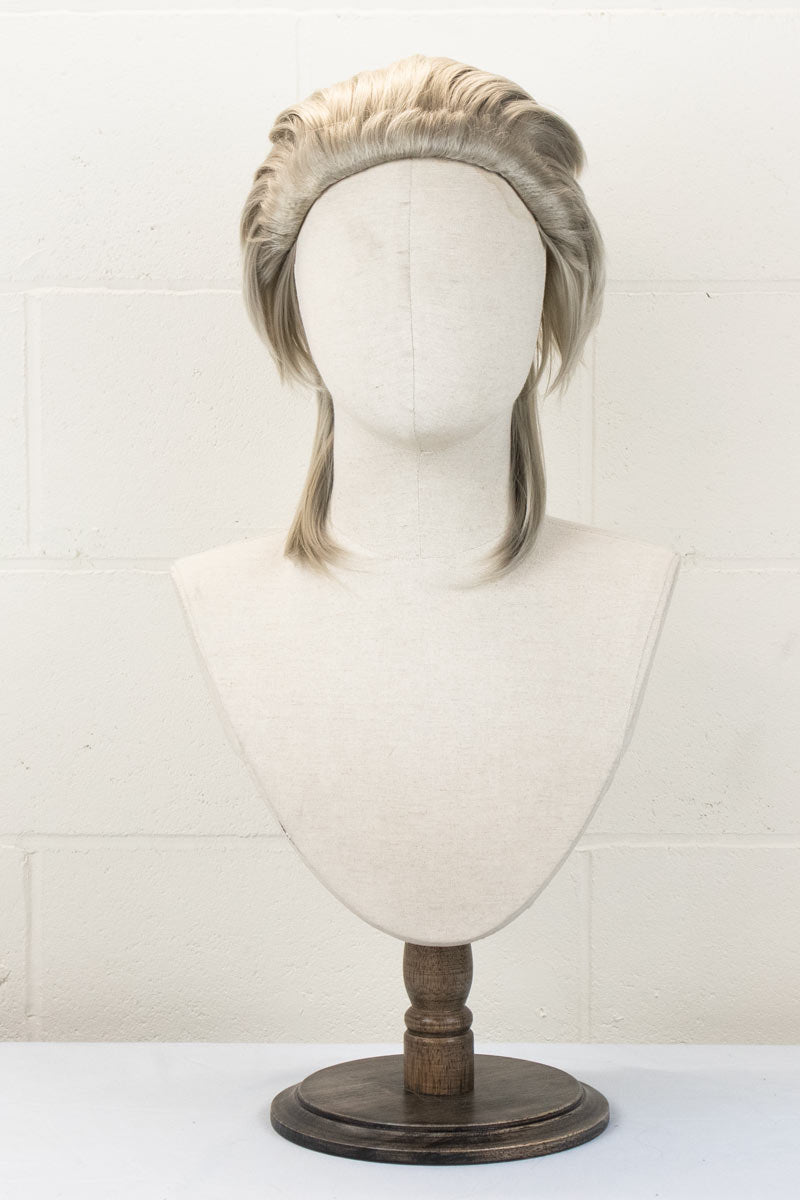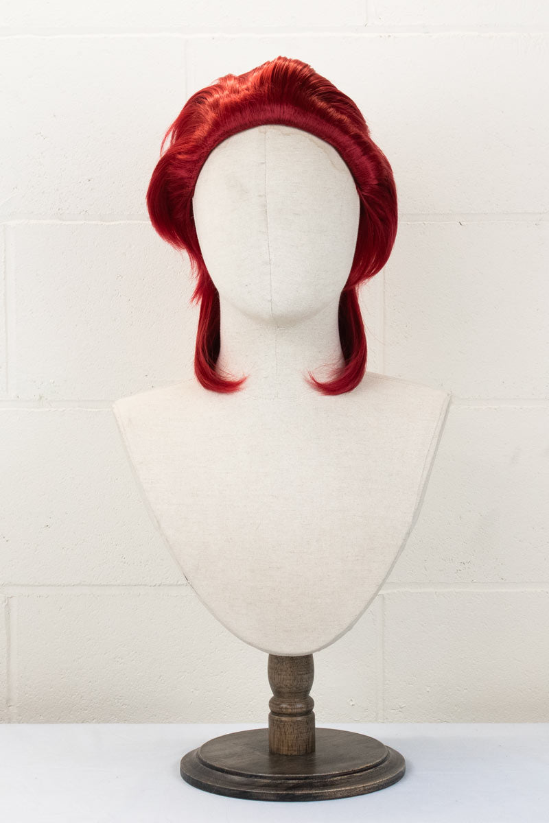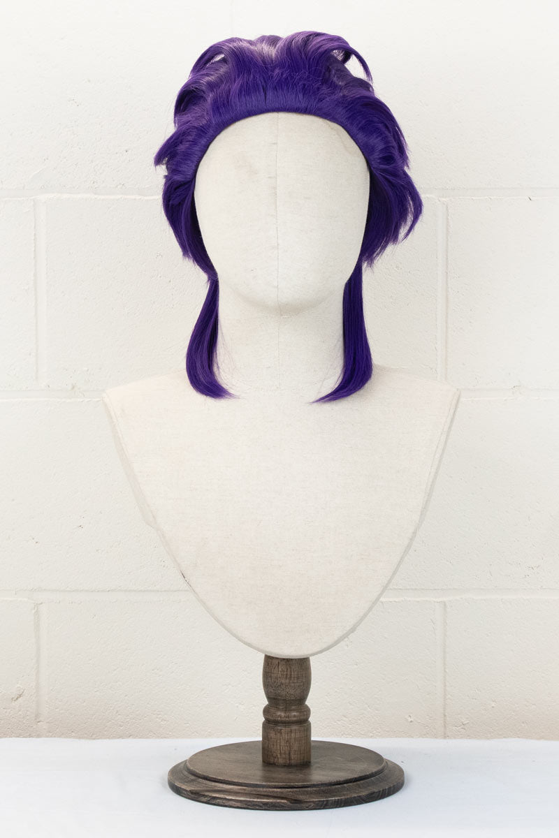 The fringe of this wig is prestyled to go up and backwards but it can be made to point down instead using heat (see styling notes below.)